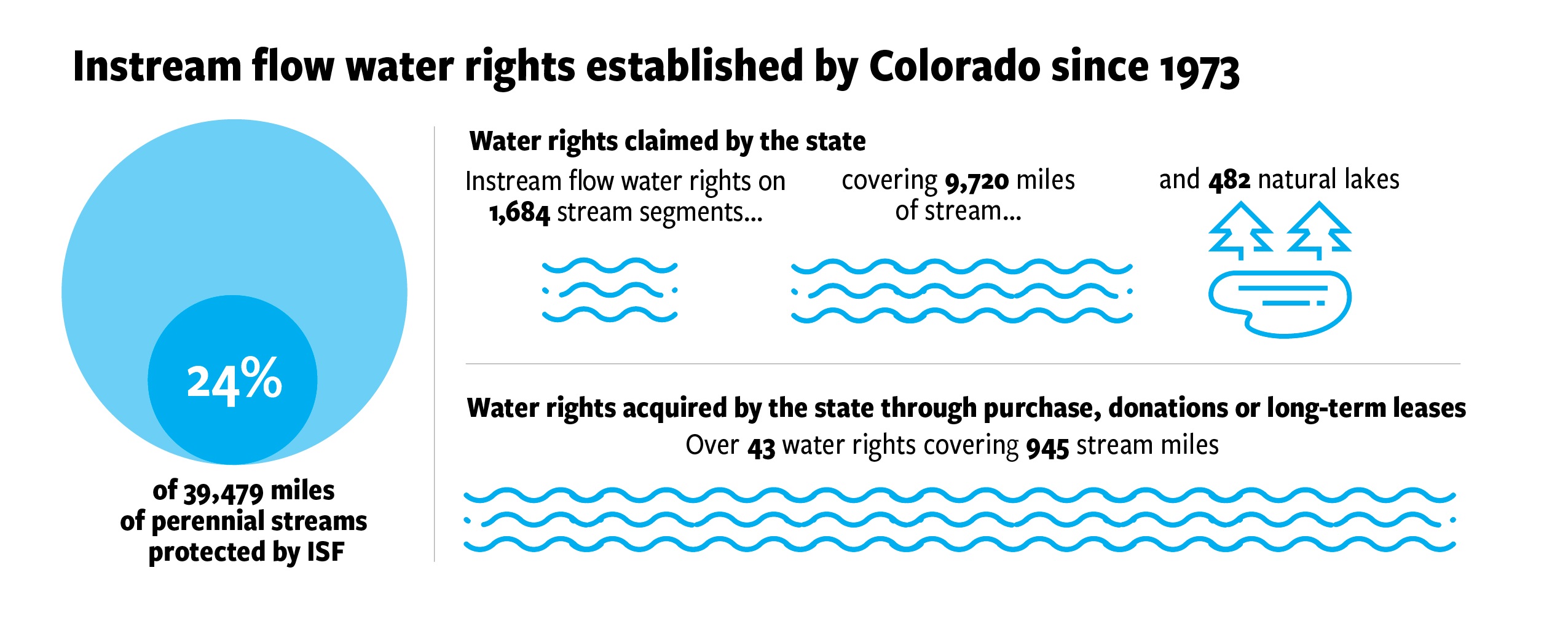 In 1973, Colorado broke new legal ground by establishing water rights solely for the protection of streams, fish and wildlife. Prior to that, water could be diverted only for things like farming, manufacturing and residential water use.
