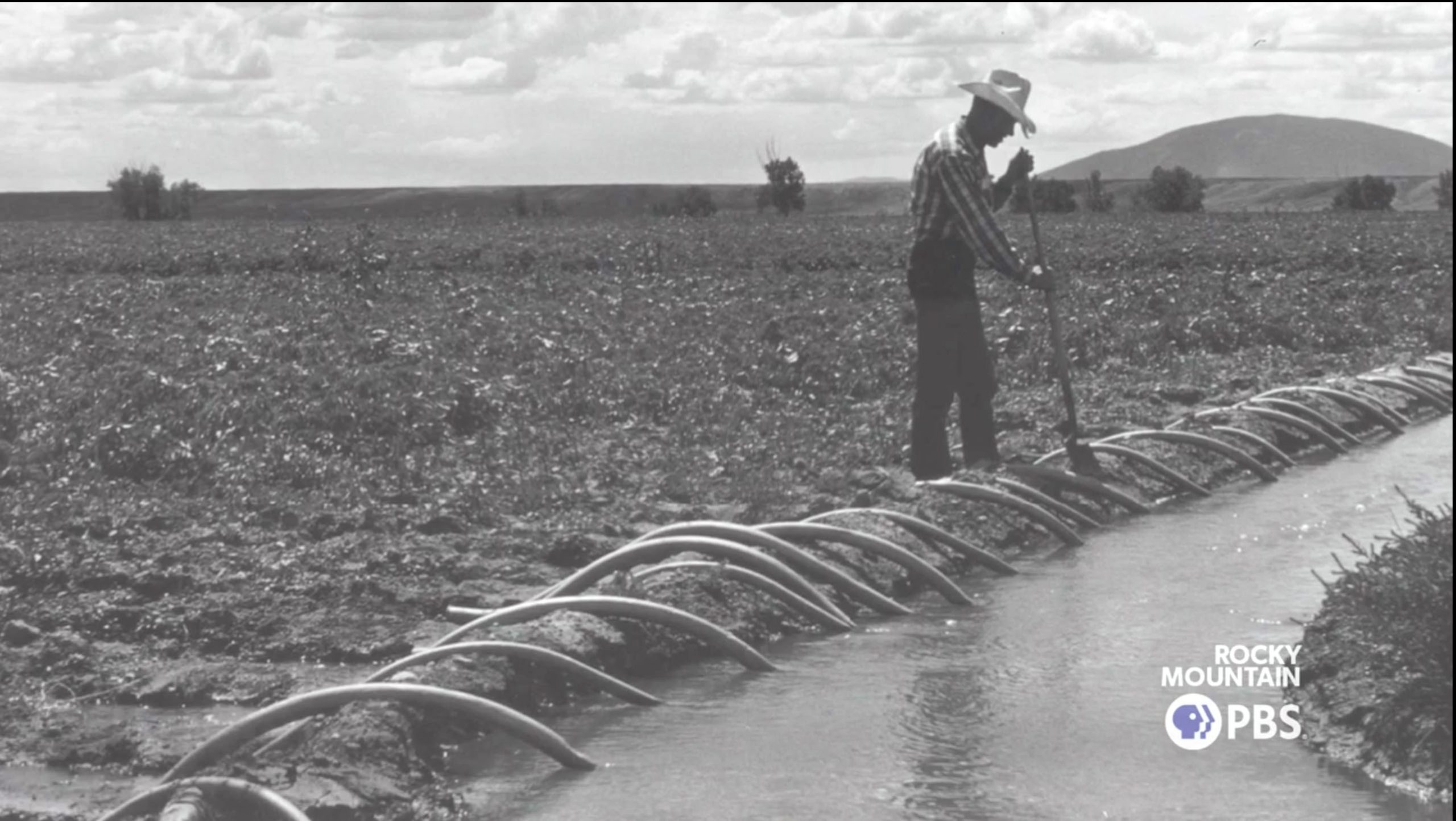 Water from the Acequias, a shared collection of gravity fed irrigation ditches have been a historic part of irrigation in the San Luis Valley from the Acequias (PBS Photo)