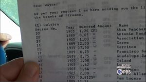 List of priority acequia water users dating back to 1905. (PBS Photo)