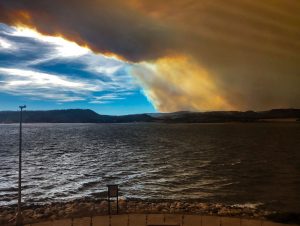 The East Troublesome Fire burns near the Farr Pump Plant on Lake Granby October 2020. Credit: Northern Water