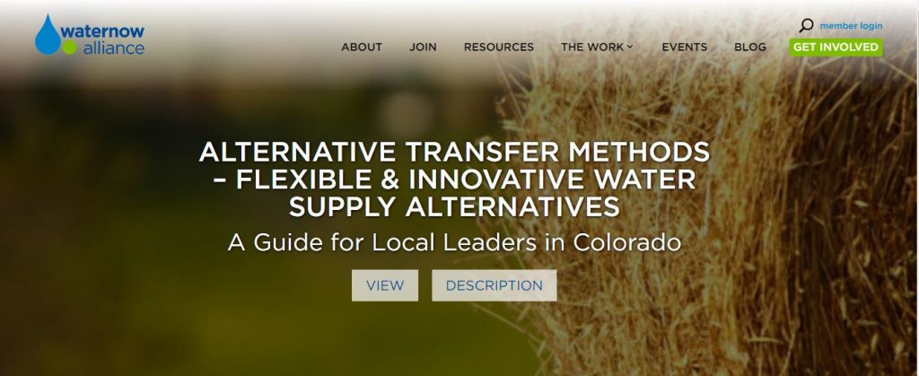 Thus far we’ve sent emails focused on land use and water, stream management plans in Colorado, environmental justice and equity in the water sector, and water reuse. This week we’ll look at alternative transfer methods and the value of agriculture. Read on to learn more. And continue to be well!