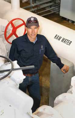 Across the room, a large computer screen glows with diagrams of the water treatment plant and the delivery system. This supervisory control and data acquisition (SCADA) system gives a detailed, underground view of everything water-related, from old town Erie out to its polished Vista Ridge neighborhood and golf course.