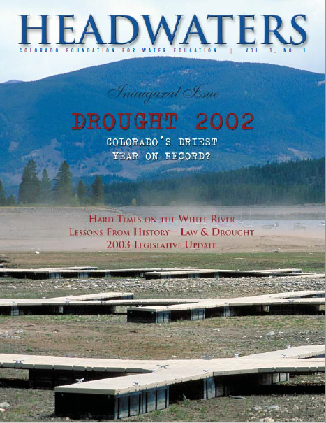 The feature of this inaugural issue is drought, a very timely topic in the fall of 2003. In this issue we recount the 2002 drought – its severity and what it says about our vulnerability to future droughts. Explore the drought of 2002 by viewing the PDF of Headwaters.