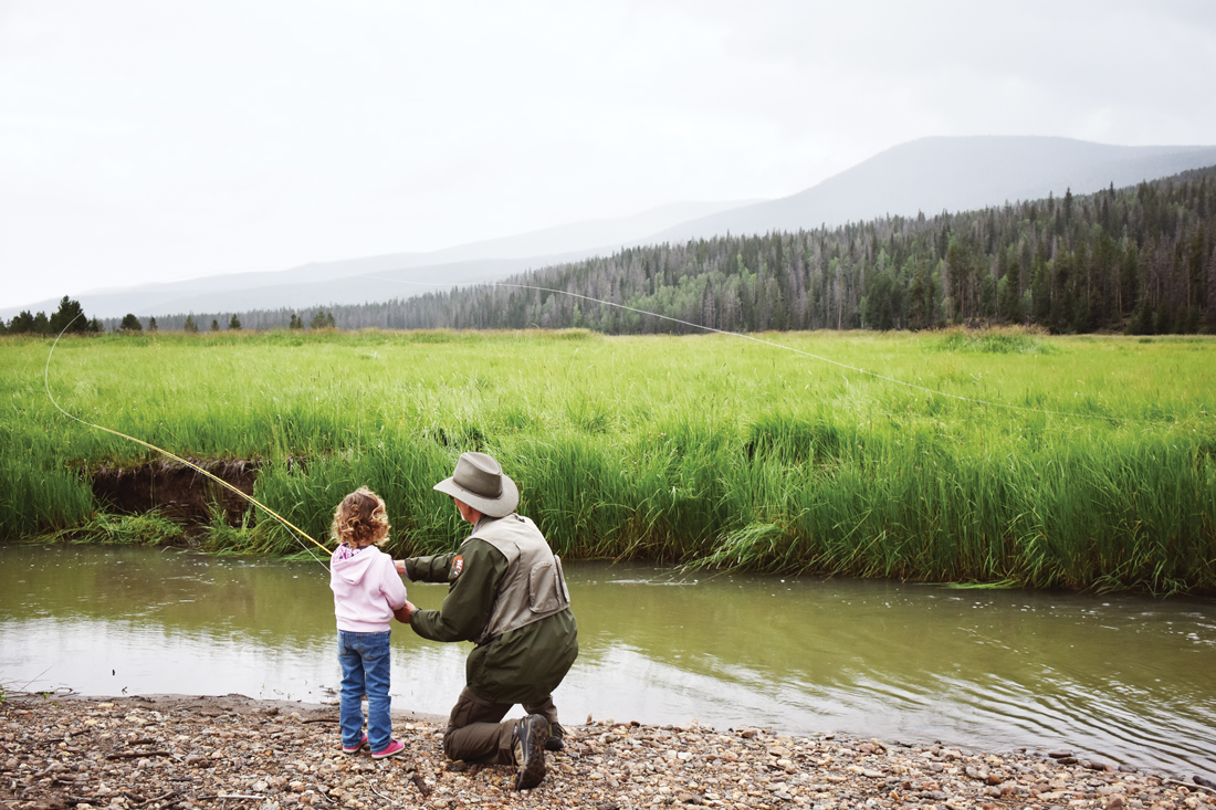 A park ranger at Rocky Mountain National Park teaches a young child to use a fly rod. “Connecting youth to outdoor activities is critical to their mental development and plants seeds for future conservation of natural resources.” -Fisheries biologist Ben Zimmerman