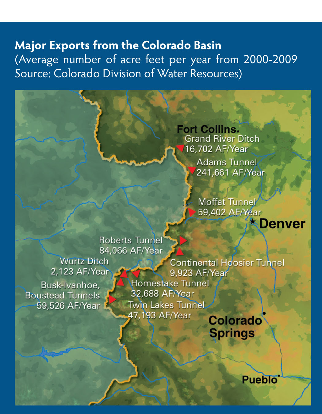 From the perspective of Coloradans who live along the mainstem and its tributaries, those 2.6 million acre feet are easier to let go of than the half-million that leave the headwaters to cross the Continental Divide. They, and their friends and customers from other regions, get to fish in, float on and otherwise “use” that water as it passes by, while the transmountain diversions are forever removed from the river.
