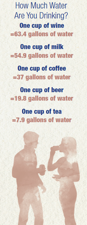 From investigating big-picture choices such as our energy sources to simply installing a $10 aerator on a kitchen faucet, consumers can see their actions impacting water supplies. Incorporating a meatless dinner on the menu once a week can make a difference. Switching from coffee to tea, with a footprint of nearly 30 gallons of water less per cup, could have saved 400 gallons of water in the writing of this story alone.