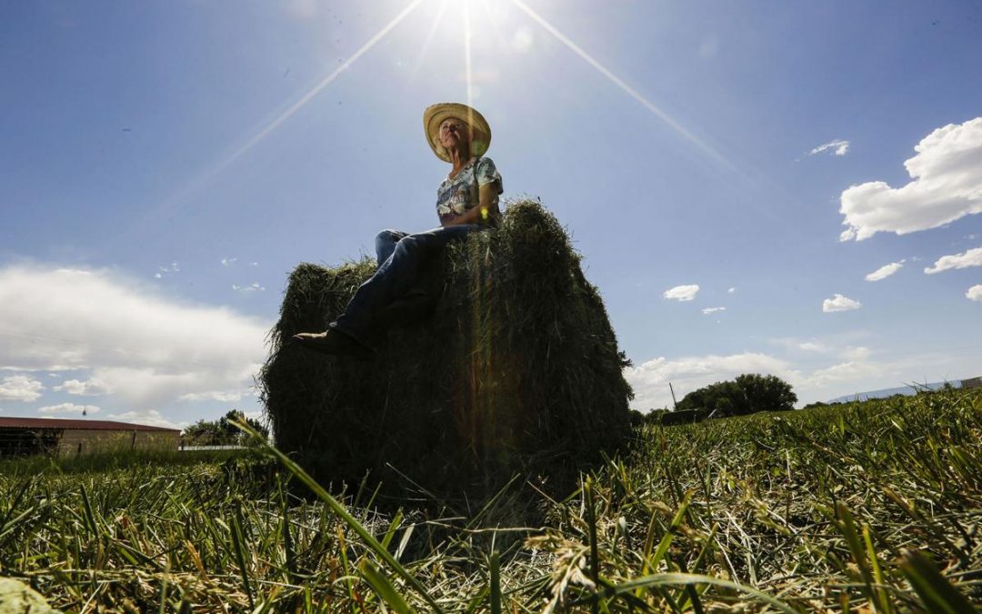 Dixie Luke holds hay at her farm near Hotchkiss. Luke said that last year on July 4 they paid $120 a ton for hay. “If you can buy hay now, it’s every bit of $250” a ton, she said. Credit: Chancey Bush, Grand Junction Sentinel