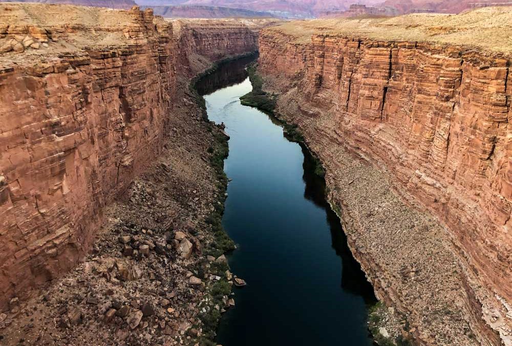 A tranquil stretch of the Colorado River near the Navajo Bridge in Marble Canyon, Arizona. The river supplies water to 40 million people across seven western states and is used to irrigate 5.5 million acres of land for agricultural uses. Photo credit: Denver Water.