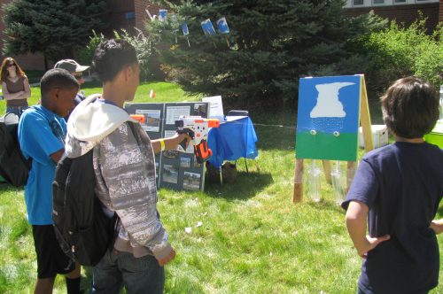 - Students play “Make it Rain” shooting water guns at a target and measuring their results with a rain gauge