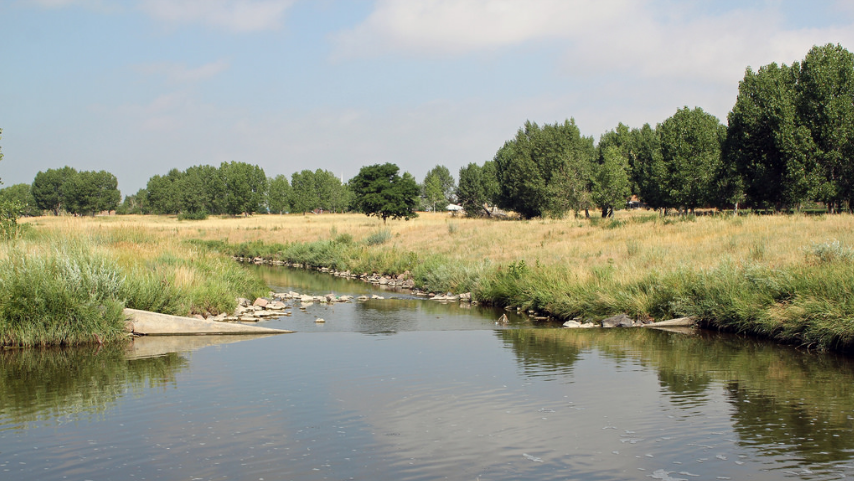Snowmelt from the mountains delivers the water to both. By July, the lower South Platte River consists primarily of treated wastewater effluent from metropolitan Denver and return flows from irrigated fields upstream. Occasional rainstorms spike the flows.