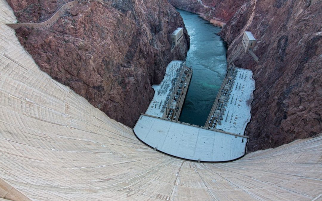 Standing atop Hoover Dam, peering over the chain-link fence down its 726-foot concave face of concrete, you simply feel impressed. The dam tamed the Colorado River’s floods and created a reservoir, Lake Mead, able to hold 26.1 million acre-feet of water, not quite two years of annual flows, when full at an elevation of almost 1,220 feet.