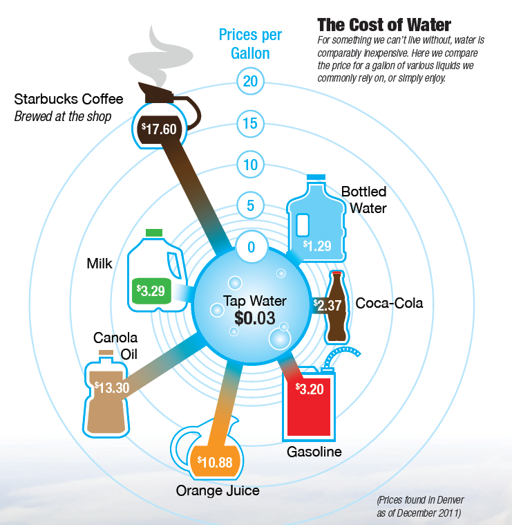 While the pricing of water rights often reflects market value, individual water bills do not even come close to covering the true value of the water coming out of the tap. According to Chuck Howe, professor emeritus of economics at the University of Colorado, one of the biggest shortcomings of how water is priced is that people get to use very expensive water without really paying for it. Utilities charge consumers for the operational and maintenance costs of water delivery but leave out an important chunk of the value of water—the investment or opportunity costs.