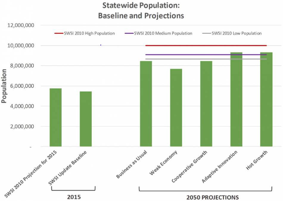 Although Colorado’s population has grown, population projections have decreased in comparison to the 2010 Statewide Water Supply Initiative analysis. The 2019 SWSI update, or technical update, will use these updated population numbers to determine future shortages.