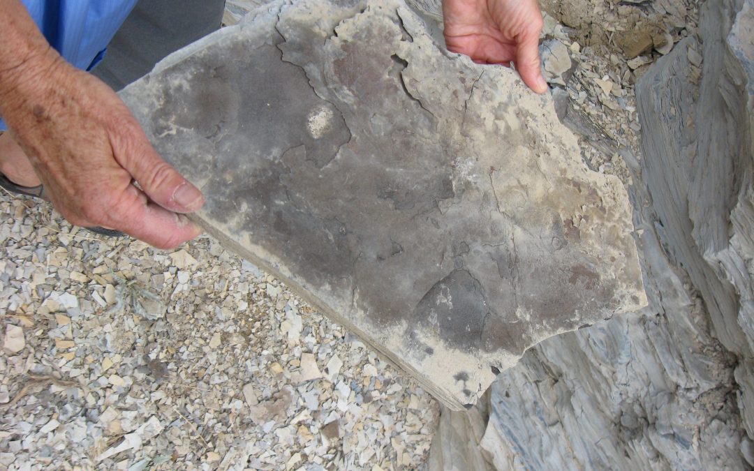 “You can see the mahogany marker in the rock,” Frank Cooley said when he directed me to the road cut. The mahogany marker, as the practicing water lawyer and trained geologist described it, was a layer of whitish volcanic ash several inches thick atop the mahogany layer itself. Mahogany is the richest of eight zones of kerogen—the precursor to oil and gas.