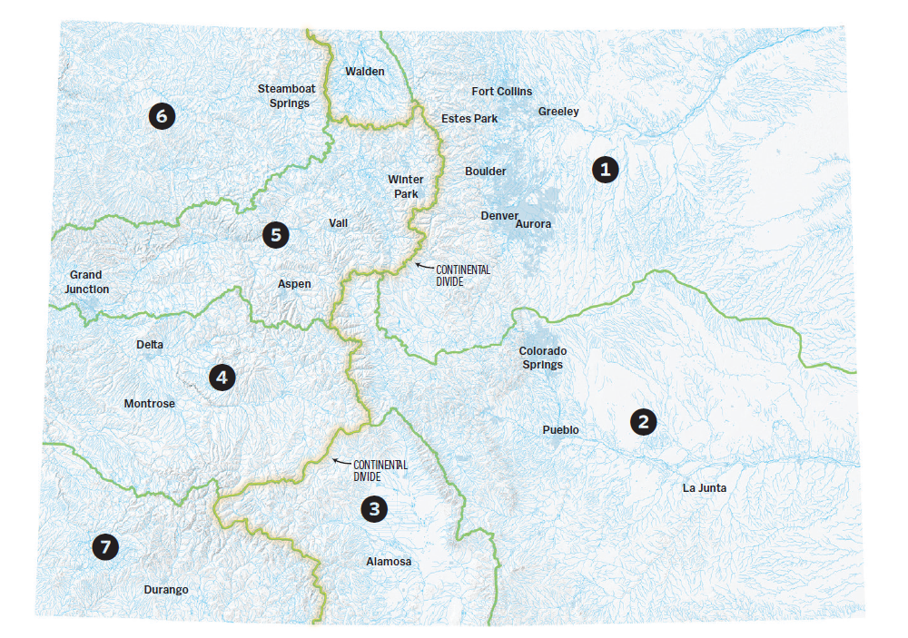 - Steamboat Springs: Yampa, White, Green, and North Platte River basins